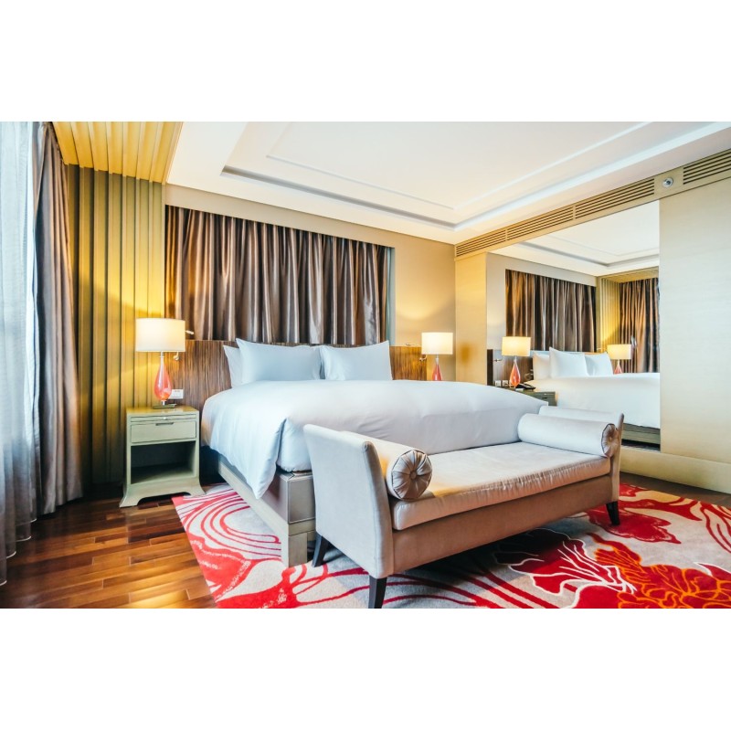 Modern Oasis Suite Hotel Bedroom blends contemporary elegance with serene comfort, featuring sleek furnishings, soft ambient lighting, and a soothing color palette. Thoughtful layout and premium finishes create a luxurious, relaxing retreat for guests.
