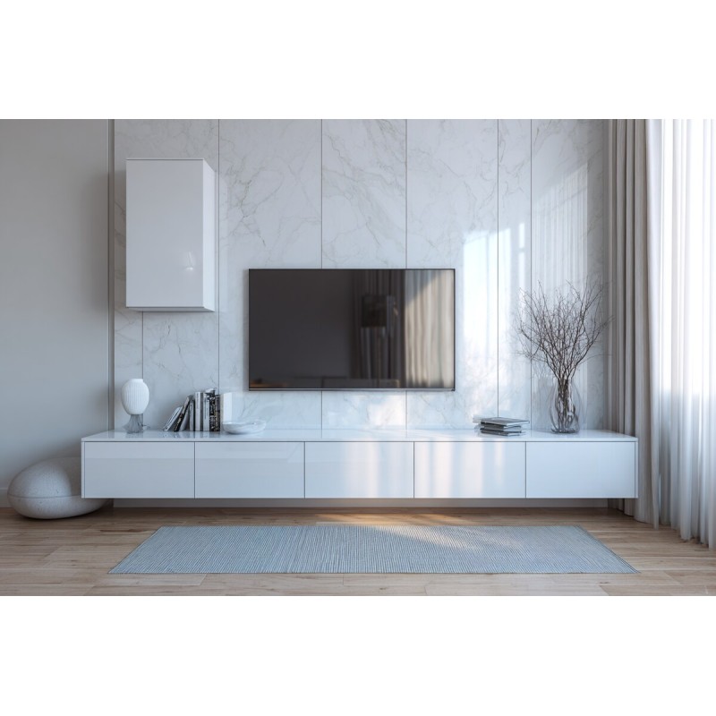 Finished in smooth white gloss, this TV unit adds a polished touch to the living room while keeping the space feeling light and open. The reflective surface gently bounces light around the room, helping smaller or dimly lit areas appear brighter. With a layout that combines open shelves and closed compartments, the unit offers tidy storage without compromising style. It works well in modern homes where clean lines and minimal detail are preferred. The glossy surface is easy to clean and pairs nicely with a range of colours and materials, from soft neutrals to bold accents. Ideal for those who enjoy fresh, uncluttered surroundings, this design remains a favourite for its blend of visual brightness and everyday practicality. It creates a calm, inviting setting with little effort.