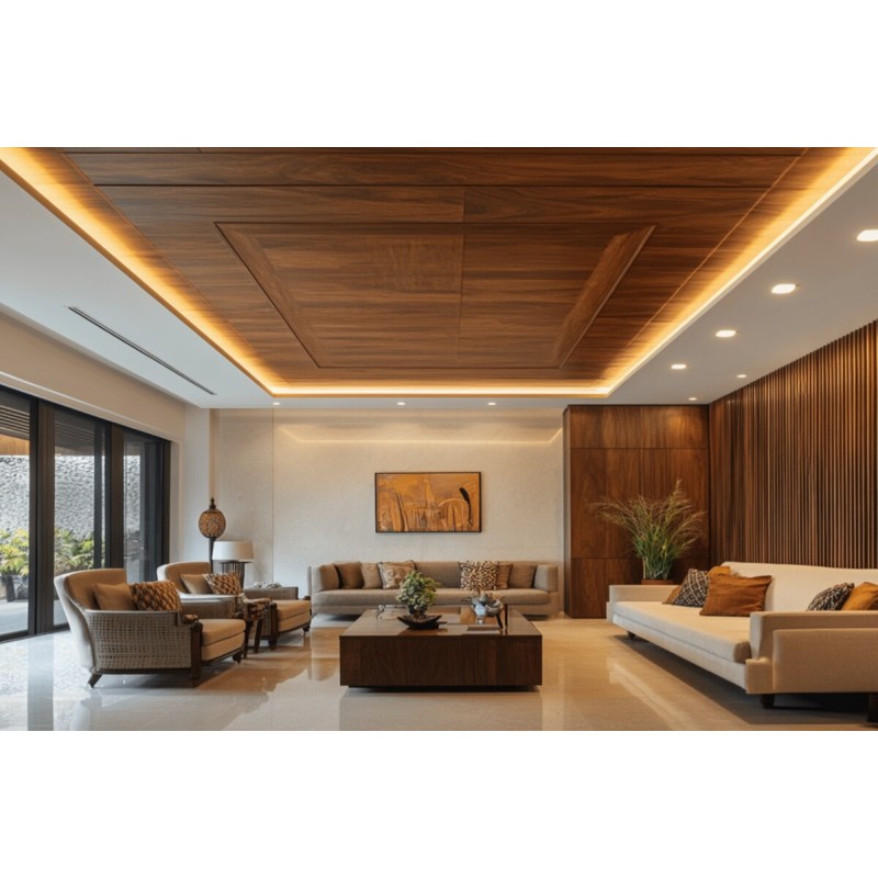 Add architectural charm to your space with our modern double-layered false ceiling featuring elegant wooden panels. Its layered design brings depth and sophistication, while the natural or dark wood finish adds timeless warmth. Perfect for living rooms, dining areas, or bedrooms, it’s a refined blend of style and function.