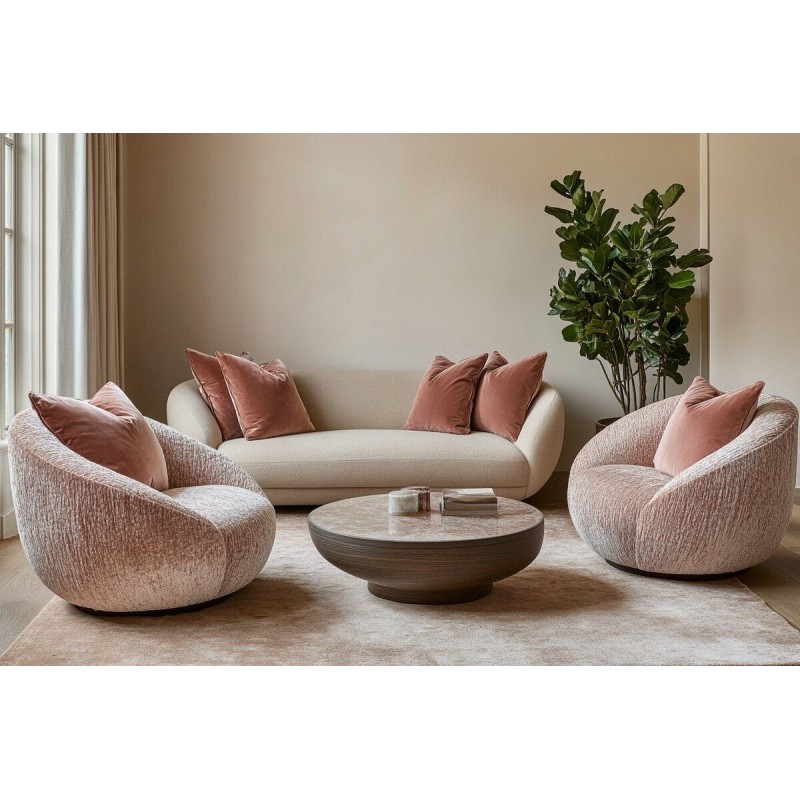 Contemporary Living Room Design with Beige Sofa and Dusty Rose Armchairs