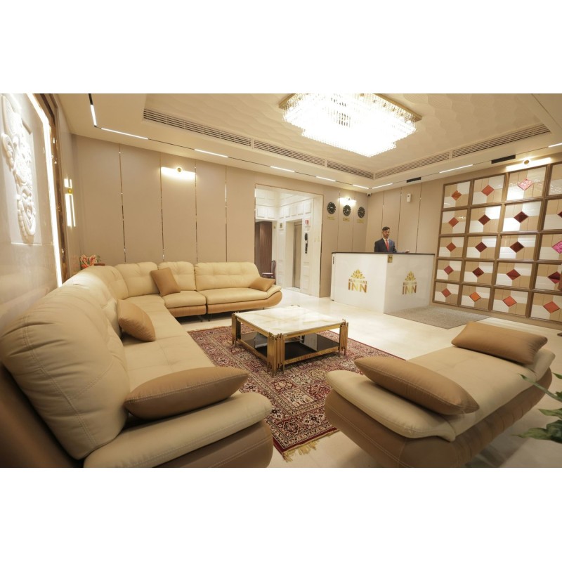 Royal Gate Hotel Reception welcomes guests with an elegant, grand design featuring premium materials, warm lighting, and refined décor. The luxurious layout creates a majestic first impression, blending sophistication with inviting hospitality.